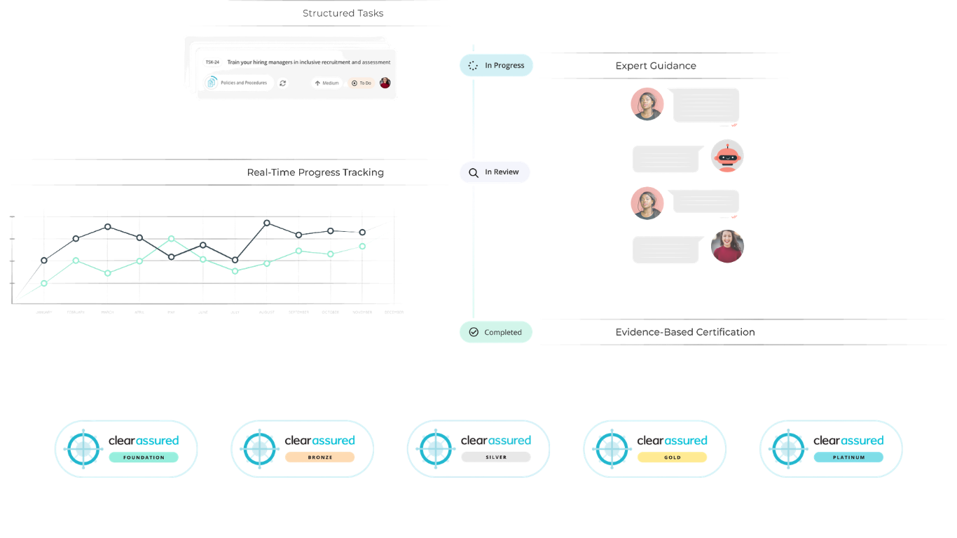 Clear Assured empowers organisations to certify their DEI and culture progress through an evidence-based framework.